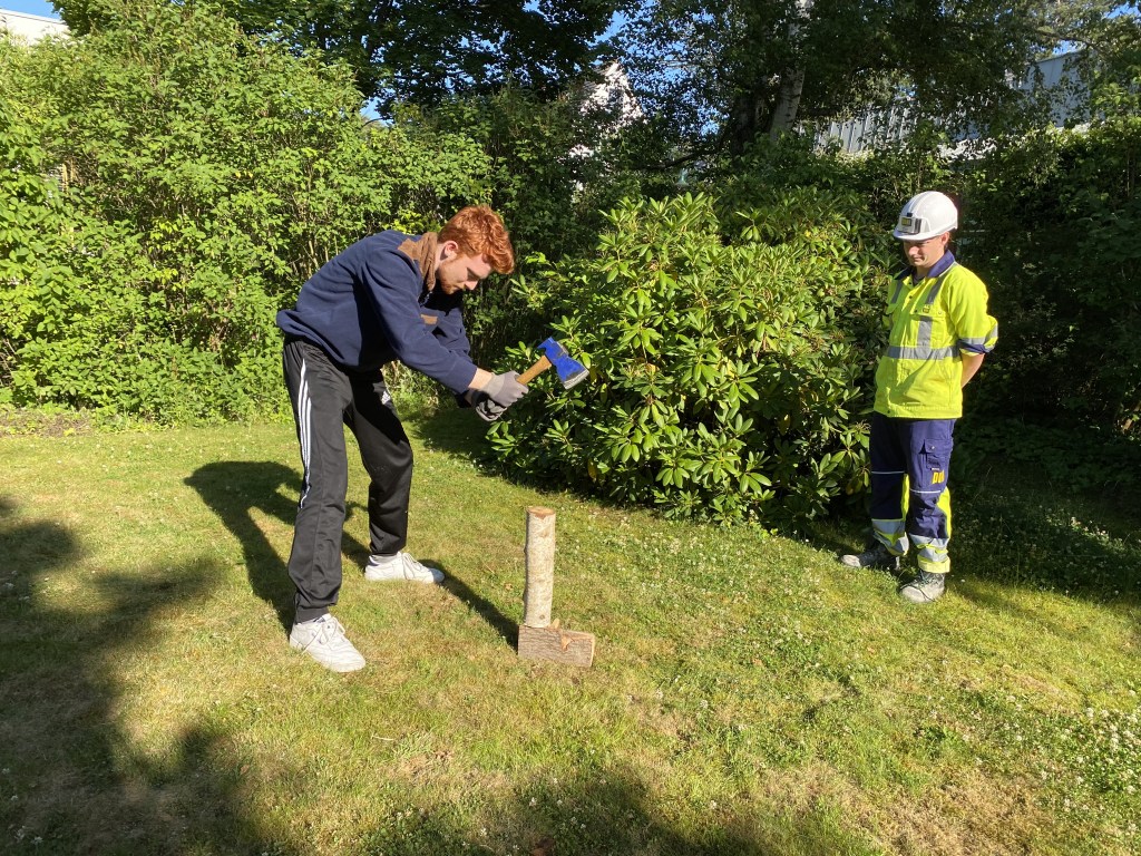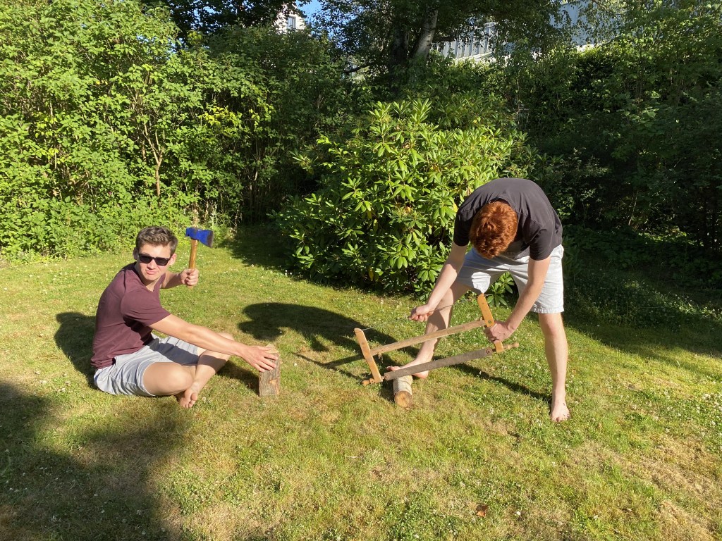 • Vor und hinter dem Arbeitenden darf Keiner stehen (falls das Beil mal aus der Hand gleitet)